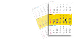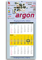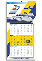 Hμερολόγιο τοίχου με τρείς μήνες ανά σελίδα και ημερολογιακή ένδειξη του μήνα που διανύουμε.